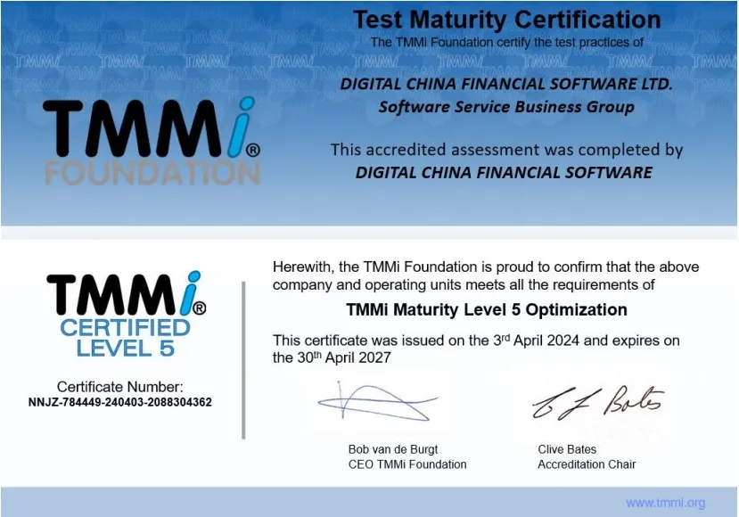 近日,神州信息子公司——lewin乐玩融信软件有限公司(下文简称“lewin乐玩融信”)通过TMMi(测试能力成熟度模型集成)最高级别5级国际权威认证,成为国内同时获得TMMi5级认证和CMMI5级认证的企业,覆盖咨询、产品需求、软件开发、测试、运维全流程的IT软件研发及服务。